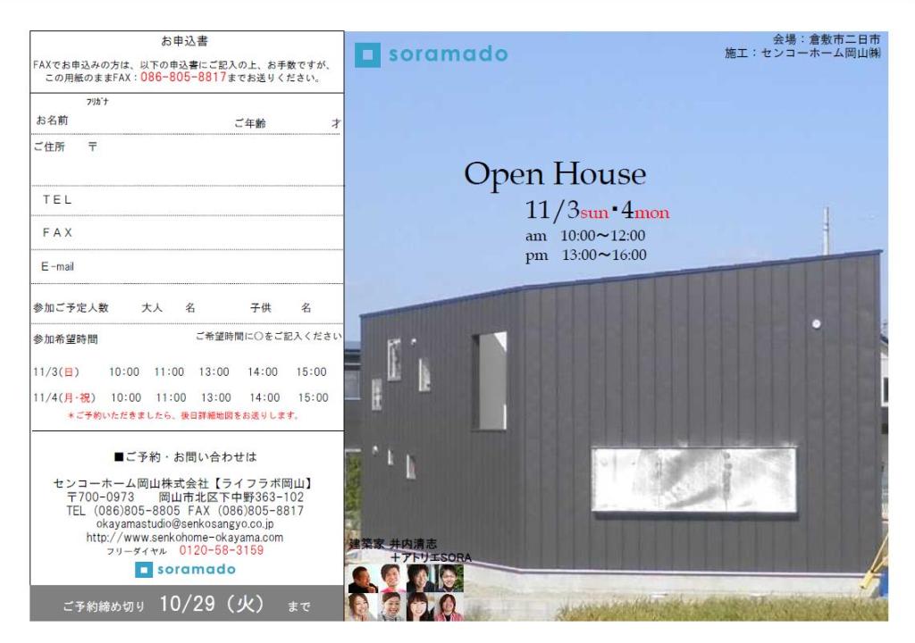 倉敷市で建築中のT様邸【ソラマドの家】の完成見学会をお施主様のご厚意により開催します。