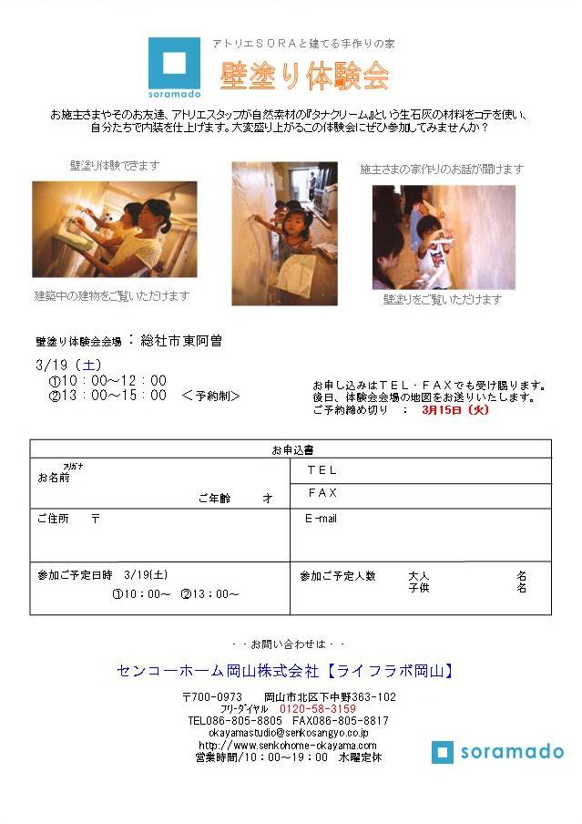 3/19(土)壁塗り体験会を開催します。
