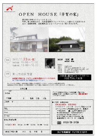 お施主様のご厚意により11/23(水・祝)にオープンハウスを開催します。