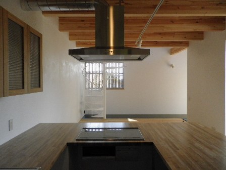 キッチンからみえる螺旋階段。