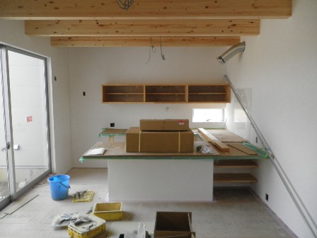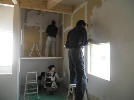 岡山市中区江並で建築中のH様邸で、23・24日の二日間、壁塗りしました。
