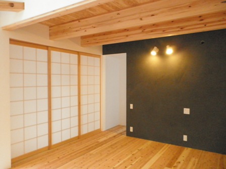 奥の部屋の壁は一面だけ塗装しました。