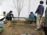 ジューンベリーの木(左側)は白い花が咲き、赤い実が生ります。