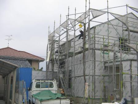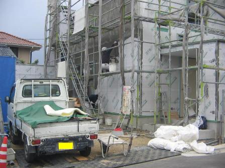 木工事も終わり、外部のそとん壁の下塗り作業に入りました。