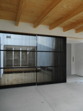 ソラマドとガレージをゆるく結ぶ格子戸があったり。