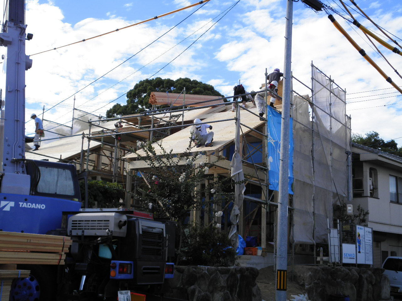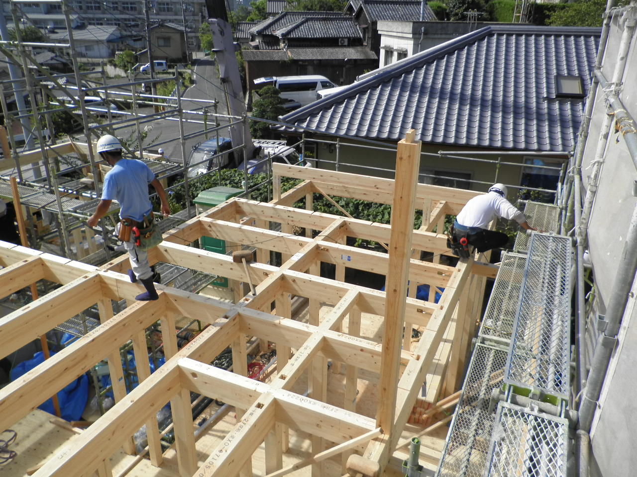 連日の猛暑の中、大工さんたちはもくもくと作業されていました。