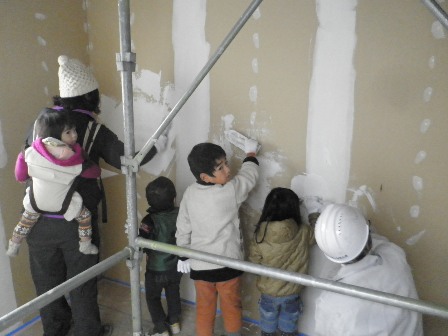 ご兄弟が大集合、そしてソラマドに暮らすお施主様、建築中のお施主様、計画中のソラマドファミリー様、とたくさんの人で壁塗りを楽しみました。