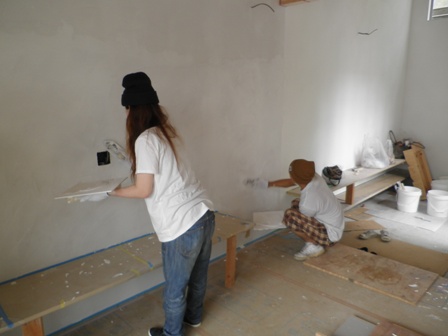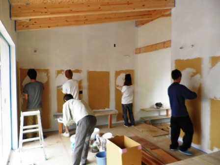備前市で建築中の【ソラマドの家】A様邸にて壁塗りしました。