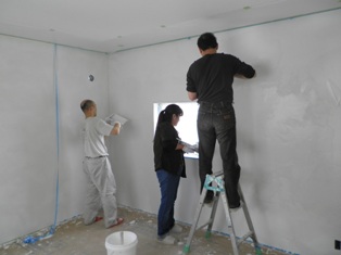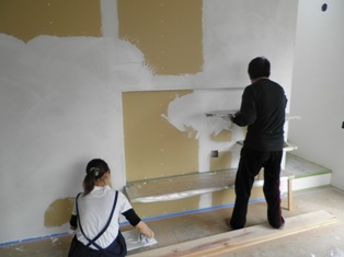 ソラマドファミリー様の壁塗り体験参加もあり、二日間とも賑やかに楽しく壁塗りしました。