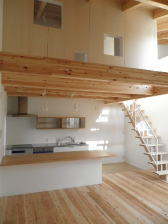 おうちの中へ入るとキッチンの上に浮いたように見えるお部屋があります。