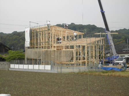 倉敷市福田町にて建築家佐渡基宏先生設計、O様邸の上棟がおこなわれました。