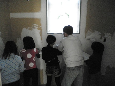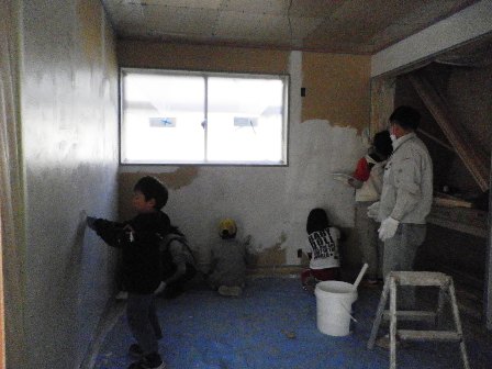 近所の子どもたちが参加した壁塗り大会は「子ども会行事」でした(笑)