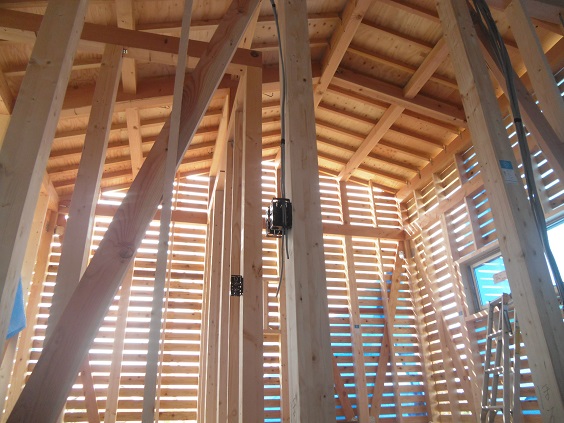 猛暑で暑い中を棟梁が木工事を頑張ってくれています。