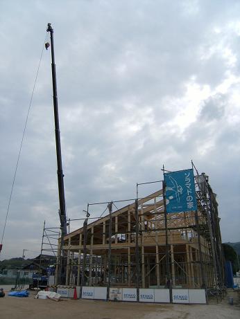 いざ当日になれば、天候にも恵まれ、無事に棟が上がりました♪