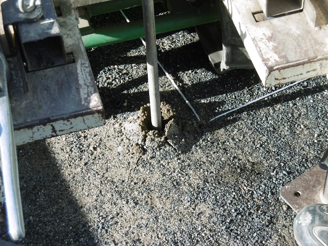 写真のように地面の中を鉄の棒(ロッド)が貫入していきます。